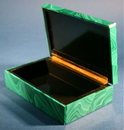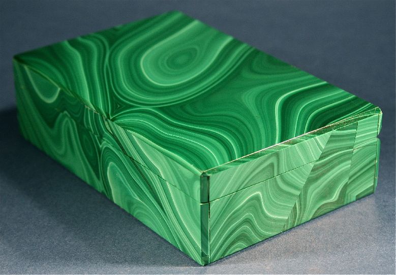 Title: Antique Russian Handmade Malachite & Black Onyx Stone Box