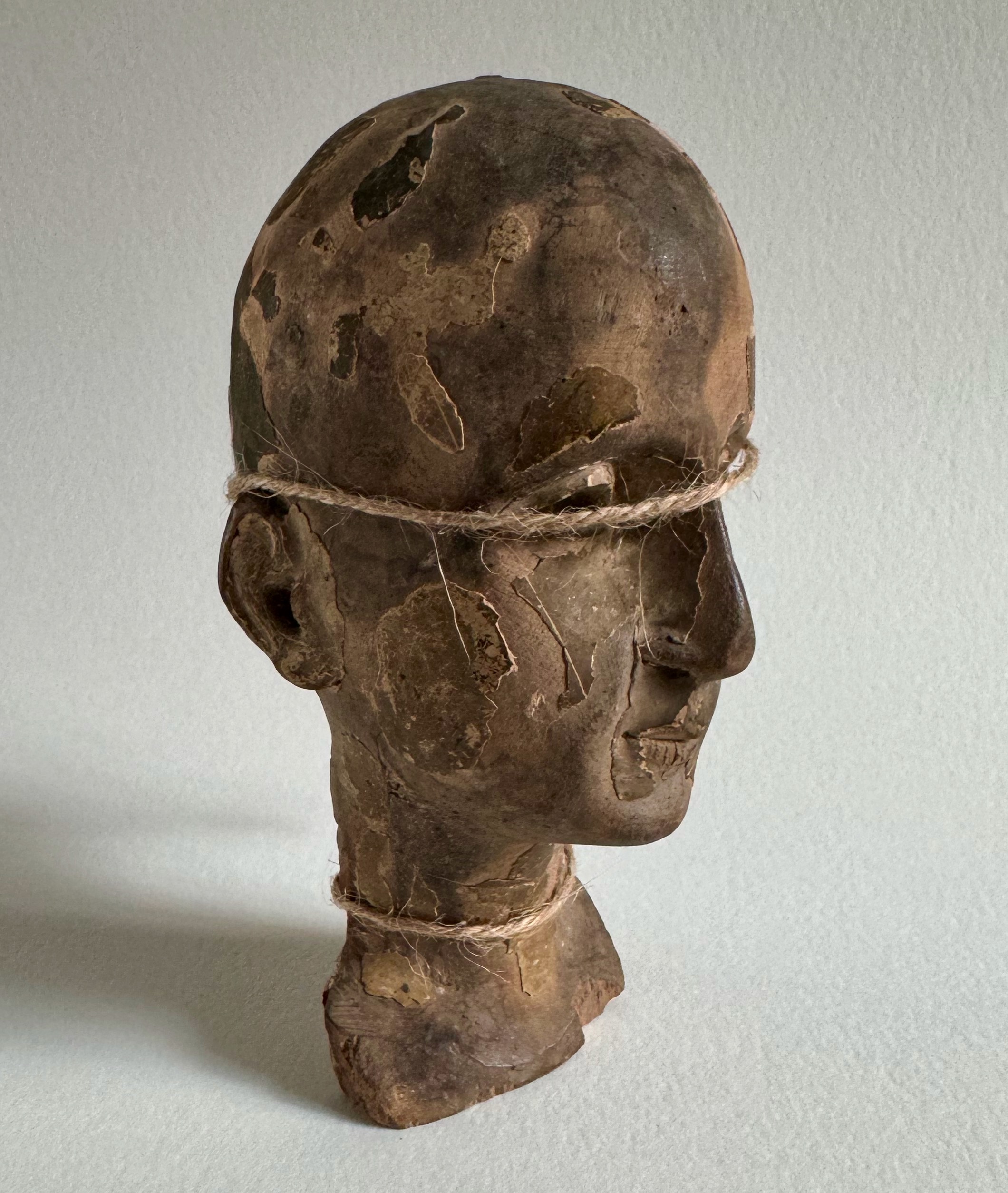Title: 18th-Century Antique Hand-Carved Santos Religious Head