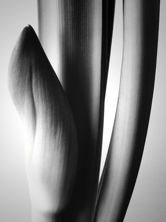 Amaryllis Bud by artist Mark Fields is a Fine Art Photograph that gives sensuousness and almost erotic power to a simple flower, and unopened Amaryllis. Having studied painting at one of Americas leading art schools, Mark Fields has the mind of a painter and has applied his knowledge of photography to creating this timeless image. The image was photographed using a medium format camera, specifically a Mamiya 645 Pro using medium format black and white film. This film size is 3 times that of 35mm film. The film frame was scanned on an Imacon film scanner, one of the highest end professional film scanners which extracts the highest level digital information. This is an archival pigment print on Exhibition Fine Art Paper made by Epson. The surface of this paper is low gloss with a slight elegant texture reminiscent of a traditional darkroom "Fiber" paper. The print image is pure neutral Black and White. The weight of this paper is a medium heavy weight 325 g/m2 and it is 13ml thick. The print is signed on the back in pencil with artists name, date the image was created and the Edition No. 4 out of an Edition of 30. Actual image size is Wd. 8.5" by Ht. 11.3" on 11" x 15" paper allowing for a substantial blank area around the image which allows for easy mounting. The print is left unmatted giving the owner the ability to have it framed to meet their own vision. My primary technical concern in my flower photographs was the use of light as a way of achieving chiaroscuro, using a timeless technique to illuminate the uniqueness of each flower. One can follow my inspiration in the work of Weston, Mapplethorpe, Blossfeldt and Renger-Patzsch. Â I establish a "relationship" with the flowers while I am working with them: in time they tell me how to capture them. Each flower has a personality unique as any person, animal or landscape. Their beauty and power come from the "actual exactness" of what they are. Â Rather than trying to obscure them by imposing photographic techniques that camouflage their precise characteristic, their magnificence comes from showing the geometry, forms, textures as a given. Using the technique of chiaroscuro, which has been used by some of the greatest artists in history as a way of creating drama, my desire is to accentuate exactly what they are, but in a dramatic way.