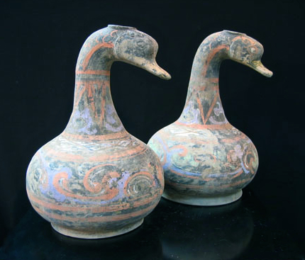 Title: Terracotta Polychrome Funerary Containers Chinese Han Duck Vessels