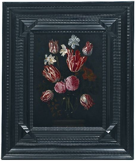 Still Life Painting By Christiaan Luycks (Belgian, 1623-1658): Floral Still Life. Oil on cradeled panel, signed with "KL" monogram at the lower center, in a wide Dutch style frame in black lacquer finish, 28 x 23-3/4 in. overall. Provenance: The Harry R. Calsing Trust, Cleveland Ohio. Acquired at Sotheby's sale 7803, lot 27, 6/5/02, labels verso. Sotheby's catalog entry "We are grateful to Fred Meijer of the Rijksbureau voor Kunsthistorische Documentatie, The Hague for confirming the attribution to Luyckx, based on photographs. He believes it is most likely an early work based on comparison with the flowers by Luyckx in a painting in the National Gallery Warsaw (formerly in the Lazienski collection). The central image of that painting is by David Teniers, signed and dated 1650." Born in Antwerp, pupil of de Marlier and of Francken III, known for still life and vanitas paintings, becoming extremely successful in his lifetime. Condition: Some light worming seen on the verso of the panel. Discrete areas of inpainting seen under UV light, older varnish layers and soils probably mask other treatments. Craquelure in - Our job is to find and target great art by collecting a vast array of contemporary, vintage, antique and collectible items from across the globe. Individually handcrafted, we breathe new life into these forgotten relics by giving back each piece it's unique story. *All of the art is edited and chosen by us for its high quality and workmanship before posting. These collectibles have been selected with the artist & collector in mind. We are committed to enhancing our customer’s lives by discovering creating, and pointing out only the best art we can find in the world today. We Are Taste-Makers, Art Advisers, Consultants & Publishers Of Spectacular Art Stories. Our job is to be intermediaries between buyers and sellers. We are vetting for high end art patrons. We are determined to catalog the world's most exceptional art and share it with everyone.