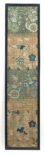 A Framed Japanese Antique Obi: 62½ x 14¾ inches. Brocade textile Obi framed under glass in a black painted frame overall 64 x 15-1/2 in. Silk and gold threads. Condition: Not inspected out of the frame. Elaborately embroidered clothing, religious objects, and household items have been a mark of wealth and status in many cultures including ancient Persia, India, China, Japan, Byzantium, and medieval and Baroque Europe. Traditional folk techniques are passed from generation to generation in cultures as diverse as northern Vietnam, Mexico, and eastern Europe. Professional workshops and guilds arose in medieval England. The output of these workshops, called Opus Anglicanum or "English work," was famous throughout Europe. - Our job is to find and target great art by collecting a vast array of contemporary, vintage, antique and collectible items from across the globe. Individually handcrafted, we breathe new life into these forgotten relics by giving back each piece it's unique story. *All of the art is edited and chosen by us for its high quality and workmanship before posting. These collectibles have been selected with the artist & collector in mind. We are committed to enhancing our customer’s lives by discovering creating, and pointing out only the best art we can find in the world today. We Are Taste-Makers, Art Advisers, Consultants & Publishers Of Spectacular Art Stories. Our job is to be intermediaries between buyers and sellers. We are vetting for high end art patrons. We are determined to catalog the world's most exceptional art and share it with everyone.