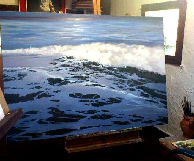 Title: In The Ola - Seascape Oil On Canvas Painting By Artist Jose Higuera