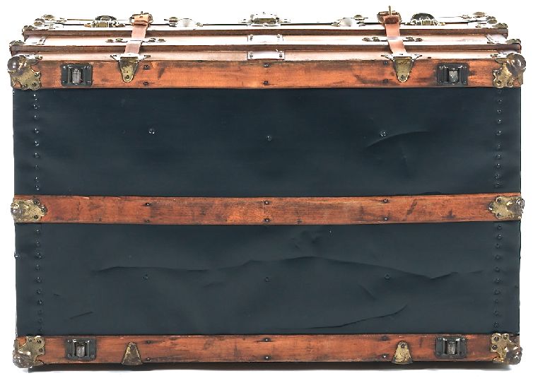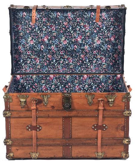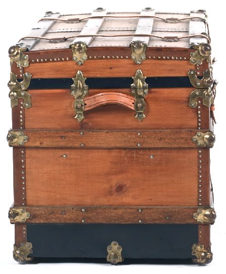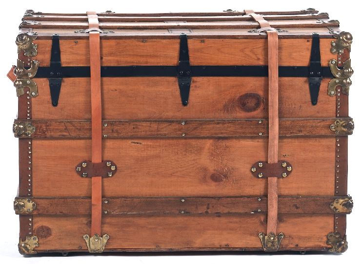Among the many styles of trunks there are Jenny Lind, Saratoga, monitor, steamer or Cabin, barrel-staves, Octogon or bevel-top, wardrobe, dome-top, barrel-top, wall trunks, and even full dresser trunks. These differing styles often only lasted for a decade or two as well, and—along with the hardware—can be extremely helpful in dating an unmarked trunk.