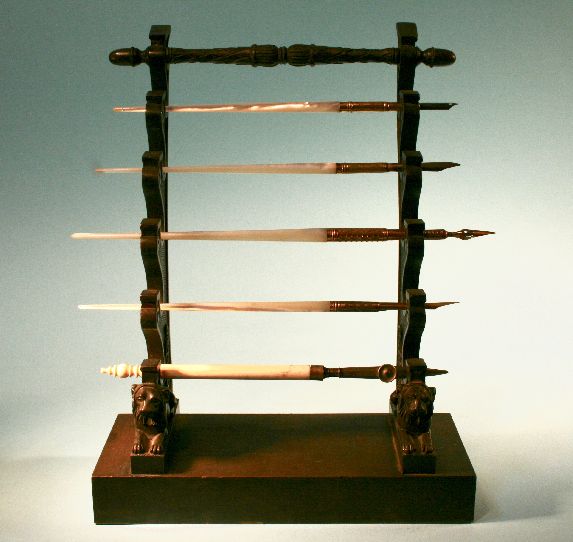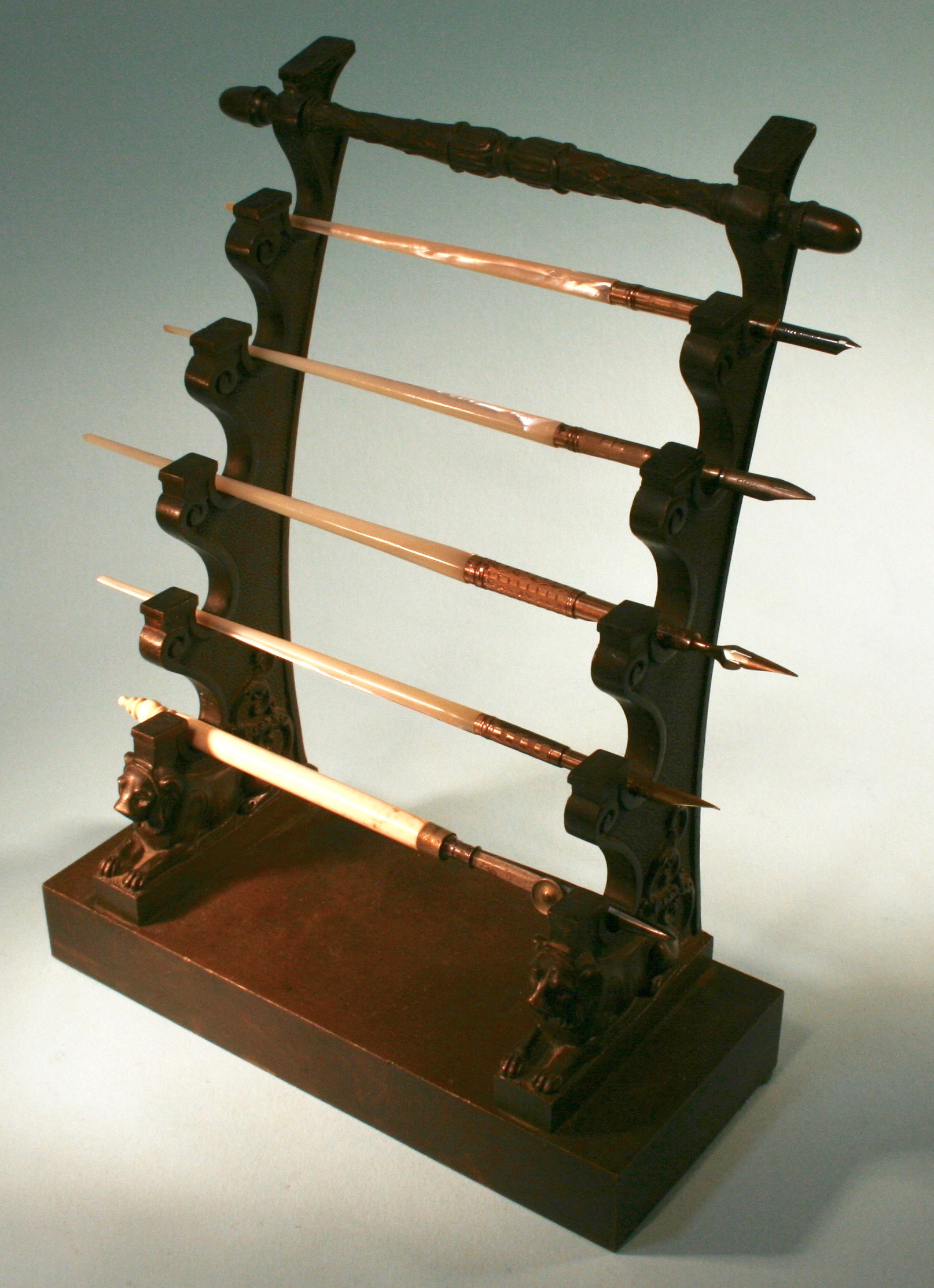 Title: Antique Victorian Bronze Display Pen Stand Holder Tool