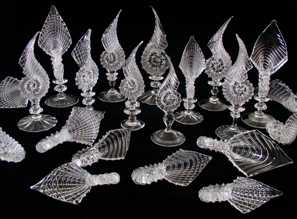 By Artist Andy Paiko, The Nautilus Glass Collection. This archive represents a selection of various experiments, explorations, and private commissions completed within the last few years. Nautilidae, both extant and extinct, are characterized by involute or slightly evolute shells that are generally smooth, with compressed or depressed whorl sections, straight to sinuous sutures, and a tubular, generally central siphuncle. Having survived relatively unchanged for millions of years, nautiluses represent the only living members of the subclass nautiloidea, and are often considered "living fossils.