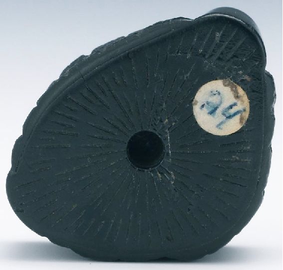A rare netsuke, beautifully carved in fine grained hard wood with a vary old patina. (19th century) Of a tree stump, details finely rendered. Carved wooden netsuke of a stump. Concave on the top. About 80 percent of surviving antique netsuke were carved in various types of native Japanese wood—cypress, cherry, black persimmon, yew, camphor, zelkova, and camellia. Unsigned. Condition: Very nicely hand carved sculpture. ¾"T x 1-¾"W From the Dr. Campbell Asian Collection. The best rare netsuke are sought after and collected from around the world. Early netsuke were usually quite plain and functional pieces of wood or stone. However, by the eighteenth century they were very often finely carved ornaments, a show of the owner's wealth. Though most netsuke were less than five centimetres high, they were carved with extraordinary detail: Carvers drew on varied themes for these accessories—nature, mythical tales and historical figures. Given that netsuke were small and easily concealed, portrayals of ribald themes or satirical iconography could easily be hidden from the Tokugawa military authorities, thereby providing the townspeople with a whimsical and in some cases subversive outlet from officially sanctioned Neo-Confucian cultural norms prevailing during these times. From the seventeenth through mid-nineteenth centuries, Japanese citizens of all classes wore the kimono—a simple T-shaped robe constructed with minimal cutting and tailoring—wrapped around the body and held in place with an obi sash. In order to carry small items such as tobacco, medicine, and seals, ingeniously constructed sagemono (a collective term for "hanging things") were suspended on cords that hung from the obi sash. Stacked, nested containers, known as inrô, were specifically designed to hold medicine or seals. Netsuke served as anchors or counterweights for inrô and sagemono. A single cord was threaded through a cord channel on one side of the suspended container, through two holes (himotoshi) in the netsuke, then through the other side of the container, and knotted on the underside of the container. A decorative bead, or ojime, slid along the cord between the netsuke and sagemono, allowing the user to open and close the container. The wearer would slip the netsuke under and dangle it over the obi sash, allowing the sagemono to hang suspended between waist and hip. In order to access the contents of the sagemono, the wearer slipped thenetsuke behind the obi sash, liberating the ensemble. By sliding the ojimetoward the netsuke, the contents of the container were easily accessible. *Our job is to find and target great art by collecting a vast array of contemporary, vintage, antique and collectible items from across the globe. Individually handcrafted, we breathe new life into these forgotten relics by giving back each piece it's unique story. We welcome dealers, galleries, and private collectors to register securely and buy with us.