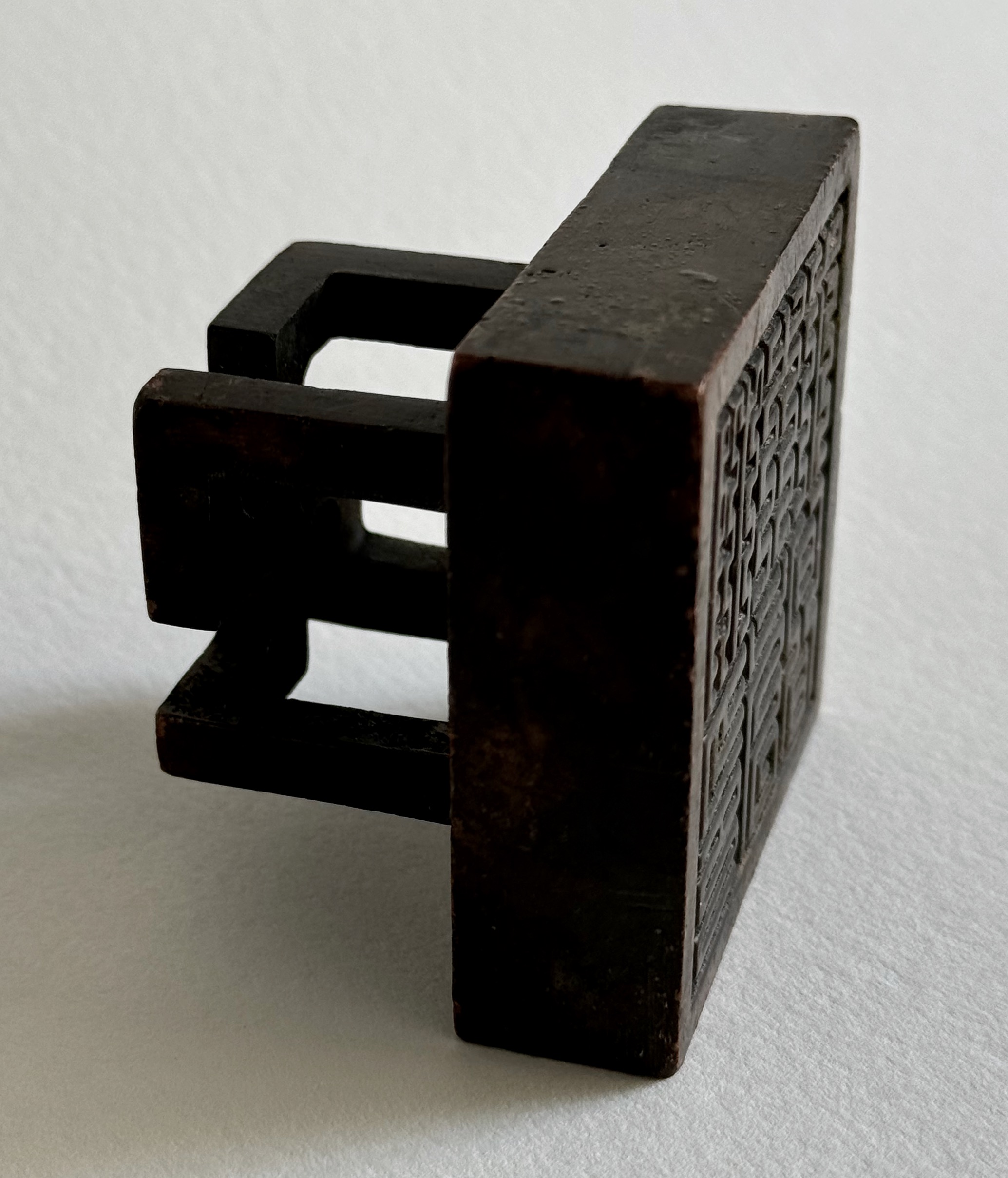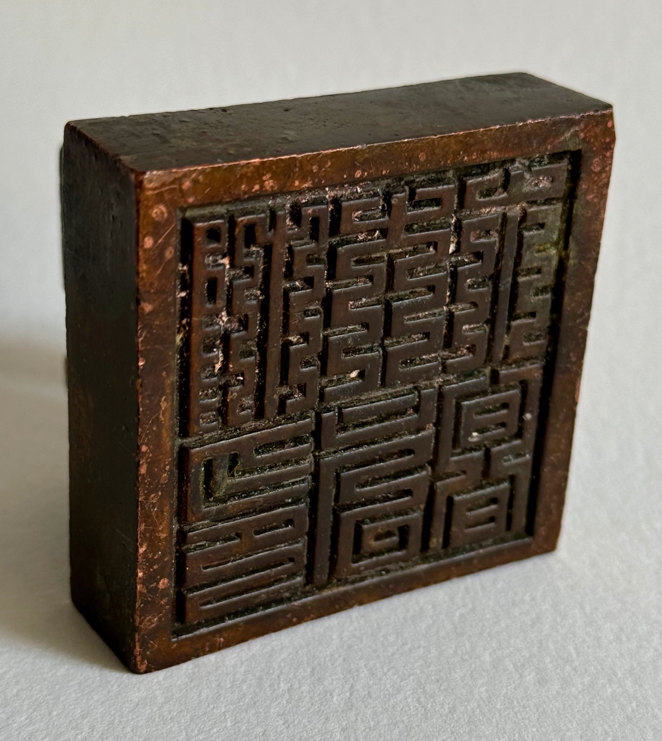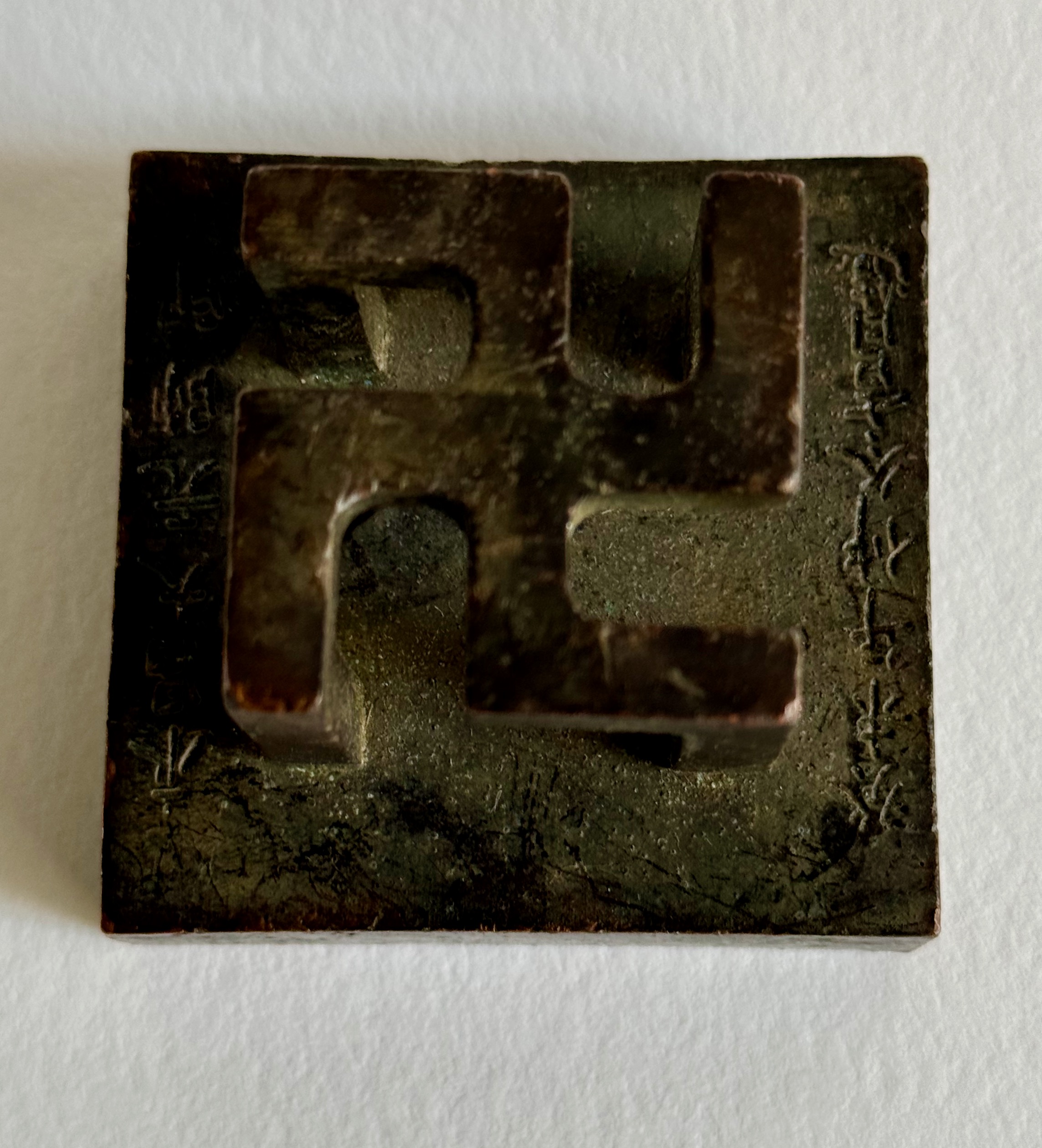 Antique Chinese bronze chop seals are a unique and significant part of Chinese history, culture, and art. Their use, which spans over two millennia, reflects the importance of written communication, authority, and personal identity in Chinese society. Today, they remain prized artifacts, both for their functional history and their artistic craftsmanship. The swastika has a long and complex history in Chinese culture, symbolizing auspiciousness, eternity, and well-being. It is one of the oldest symbols in human history, and in China, it is known as "wàn" (卍), which translates to "ten thousand" or "all-encompassing." Its origins in China are deeply intertwined with religious and cultural contexts, particularly in Buddhism, but it has also been used in other aspects of Chinese culture. In the context of Daoism and traditional Chinese philosophy, the swastika was sometimes used as a symbol of the universe’s balance and harmony. The symbol itself is thought to represent the interconnectivity of all things and the flow of positive energy through the cosmos. In addition to religious and decorative uses, the swastika has been used to represent the number 10,000, which in Chinese culture signifies infinity or eternity. This is why it is often paired with phrases like "ten thousand years of peace" or "long life without end. In China and much of Asia, however, the swastika largely retains its original positive connotations. It is still found on temples, religious iconography, and works of art, representing peace, protection, and auspiciousness, as it has for thousands of years. The swastika in Chinese culture is a powerful symbol that embodies positive ideals of good fortune, eternity, and universal harmony. Its history in China is deeply linked to the spread of Buddhism and its integration into various aspects of Chinese art, religion, and philosophy. Despite modern associations in the West, the Chinese swastika remains an enduring emblem of auspiciousness and spiritual balance.