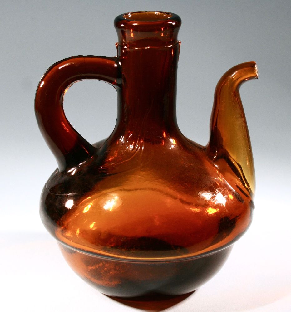 Title: Antique Hand Blown Amber Glass Oil & Vinegar Cruet Bottles