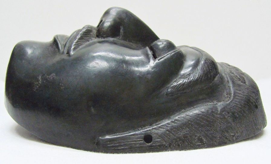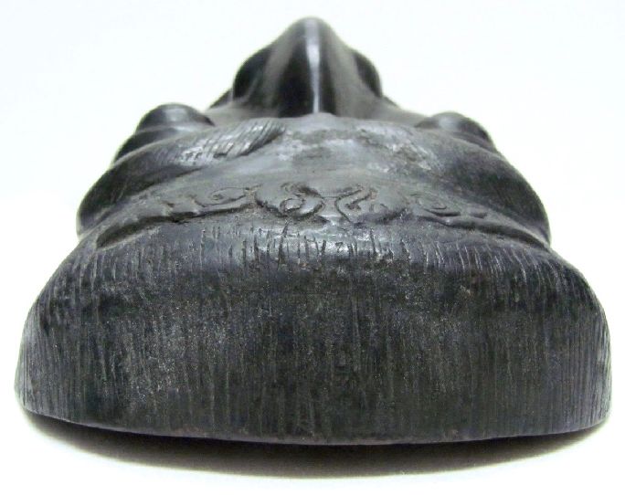 This is a fantastic life size rare solid black bronze statue, it is a beautiful antique Java Balinese Indonesian mask of a deity. it could be as old as 18th century. There are many characters in the traditional dance dramas of Java. This would be a minor deity. As a character of the Babakan Topeng, he is played in a series of Javanese solo dances. One can also find him in Gambuh, where he embodies Panji’s worst ennemy. Klana would be the Javanese equivalent of the Balinese Ravana from Wayang Wong, as they are both violent and angry. Created for use with eye slits, nose and mouth perforations for the performer. The Topeng dance originated in the 15th century in Bali and Java. “The mask is in good vintage condition. It contains minor surface wear commensurate with use and some oxidation. Please review the photographs to determine the condition.” It is believed that the use of masks is related to the cult of the ancestors, which considered dancers the interpreters of the gods. Topeng performances open with a series of non-speaking masked characters which may not be related to the story to be performed. These traditional masks often include Topeng Manis (a refined hero), Topeng Kras (a martial, authoritarian character), and Topeng Tua (an old man who may joke and draw-out the audience). The story is narrated from a Penasar, a jawless half-mask that enables the actor to speak most clearly. In group topeng, there are usually two penasars providing two points of view. The performance alternates between speaking and non-speaking characters, and can include dance and fight sequences as well as special effects (sometimes provided by the gamelan). It is almost always wrapped-up by a series of comic characters introducing their own views. The narrators and comic characters frequently break western conventions of storytelling by including current events or local gossip to get a laugh. In topeng, there is a conscious attempt to include many, sometimes contradictory, aspects of the human experience: the sacred and the profane, beauty and ugliness, refinement and caricature. A detailed description and analysis of "topeng pajegan," the one-man form of topeng, is available in Masked Performance by John Emigh, a western theater professor who has become a performer of Balinese topeng. Transcript of Indonesian Mask Theater (Topeng) Lessons and Stories The stories used in traditional Topeng are mostly used to chronicle the Ramayana and Mahabharata epics, amoung other sources. Indonesia is centrally-located along ancient trading routes between the Far East, South Asia and the Middle East, resulting in many cultural practices being strongly influenced by a multitude of religions, including Hinduism, Buddhism, Confucianism, Islam and Christianity, all strong in the major trading cities. The result is a complex cultural mixture very different from the original indigenous cultures. What is Topeng? Topeng (Indonesian for "mask") is a dramatic form of Indonesian dance in which one or more mask-wearing, ornately-costumed performers interpret traditional narratives concerning fabled kings, heroes and myths, accompanied by gamelan music. Topeng appeared in 15th century in Bali and Java, where it is still prevalent today, but it can also be found in other islands of Indonesia. Topeng dance originated from tribal dances held in the honor of ancestors, where dancers with masks were playing roles of messengers of gods. Topeng dance is usually performed for “Odalan which is a temple anniversary celebration, along with a myriad of other rituals. Topeng begins with appearance on the stage by characters that may not be related to the story. They all wear masks. Characters of noble background wear masks that cover the whole face and they do not talk at all. Masks are the one that define a character but they are also defined by a character. Characters of noble backgrounds wear beautiful white or golden masks while a half mask of jesters is more grotesque. There are also masks of demons and animals that share common animalistic features and there are masks of gods. From the 7th century CE , the powerful Srivijaya naval kingdom flourished bringing Hindu and Buddhist influences with it. The last significant non-Muslim kingdom, the Hindu Majapahit kingdom, flourished from the late 13th century, and its influence stretched over much of Indonesia. The earliest evidence of Islamised populationsin Indonesia dates to the 13th century in northern Sumatra; other Indonesian areas gradually adopted Islam which became the dominant religion in Java and Sumatra by the end of the 16th century. Europeans arrived in the 16th century There are three principal shapes of mask: those that recover the entire face, the half-mask (allowing the actor to speak) and the mini masks (used principally for clown characters). In Bali, Topeng is used to regulate social life during religious ceremonies in the temple (where they are displayed at the alter and fed) or for theatrical representations. The Topeng has evolved from early shamanistic burial and initiation rites. Mask traditions universally contain shamanistic features, for when an actor puts on a mask he gives up his own identity and embodies the character of the mask , usually a mythical being such as a demon, a supernatural hero, or a god. / Ramayana and Mahabharata: Both these epics are so highly evolved. The specialty of these texts is that the more you read them, the unsure you become. You feel like reading it again and again. You can’t read it just once and keep it aside. In Indonesia, we have Ramayana and Mahabharata written in old Javanese script. We can learn philosophy, spirituality, politics, tactics and many things from these epics. A serious learner never stops reading the two texts.