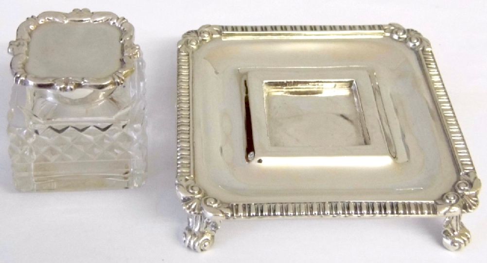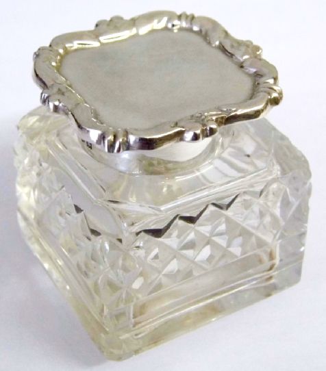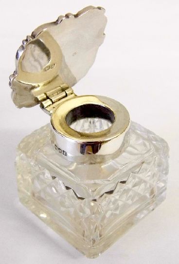 Title: Edwardian Cut Glass & Silver Lid With Stand Inkwell By Harris