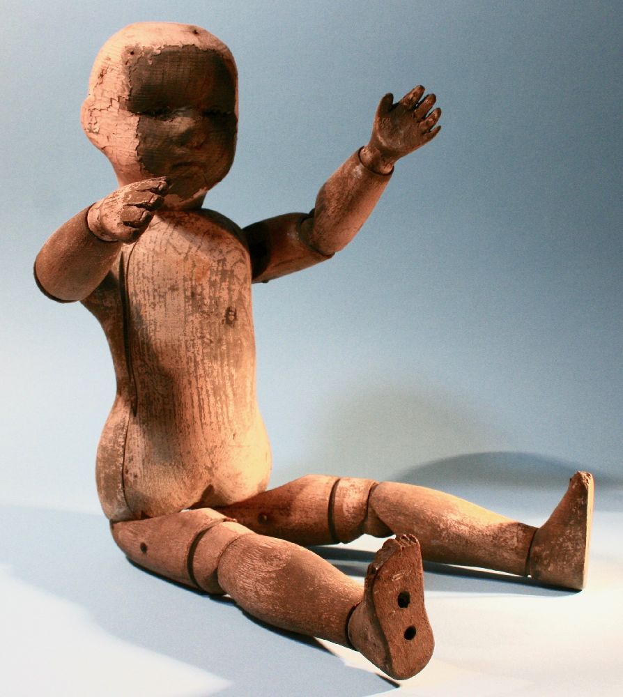 Title: Antique Hand Carved Wooden Articulated Baby Toy Doll