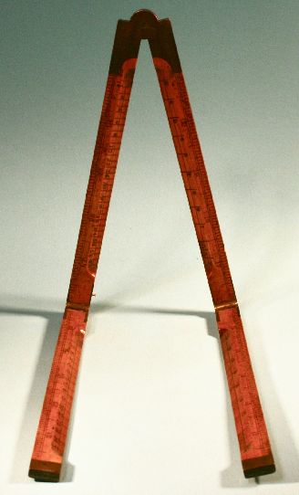 Title: Antique Bevel Edge Wooden & Brass Ruler Calculation Aid Tool