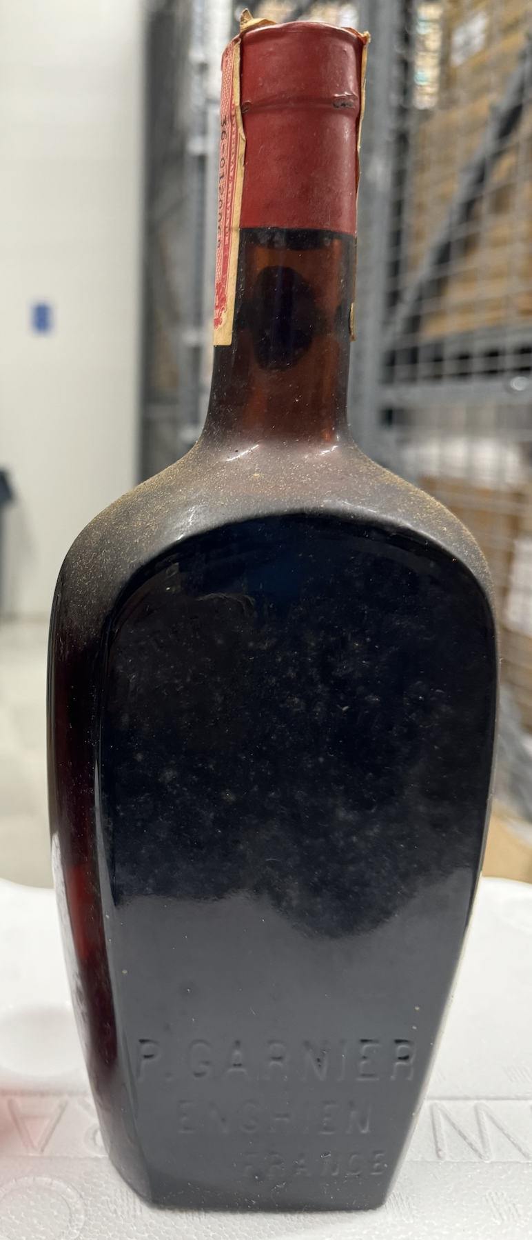 Rare Vintage P. Garnier Blackberry Liqueur - 1930s Whiskey Spirits, 60 Proof This exceptional item showcases the rich history of P. Garnier, a renowned brand celebrated for its fine liqueurs. The bottle features a Grande Médaille d’Or label, commemorating awards from prestigious international expositions: Paris 1900, St. Louis 1904, London 1908, and Paris 1925. A testament to vintage glass artistry, this piece not only highlights exquisite craftsmanship but also embodies the legacy of one of the most iconic spirits brands of the early 20th century. A true collector's gem for enthusiasts of historical liqueurs and fine whiskey. Please note that all spirits are sold for collection by specialized carriers. * Disclaimer for Sale of Antique Alcohol: This bottle is sold solely as a collectible item and is not intended for consumption. The contents are over 50 years old and may no longer be suitable for drinking. The buyer and seller assume all responsibility for any risks associated with consuming the contents. This consignment sale complies with all applicable state and federal laws concerning the sale and transfer of alcoholic beverages. The buyer affirms they are at least 21 years of age and acknowledges that this product is sold exclusively as a collectible item. The transaction will be handled directly between the owner and the buyer. Busacca Gallery will not be involved in the transaction unless a licensed broker is engaged. * Regulatory Compliance: Antique alcohol, defined as alcohol over 50 years old, may be sold in California, subject to state and federal regulations. The buyer’s legal drinking age (21 or older) must be verified. These items are sold primarily for their collectible value, not for consumption. If it is determined that the alcohol is being purchased for consumption, a licensed broker will be engaged to complete the transaction. * Recommendation: Busacca Gallery recommends that sellers consult with a legal professional or an expert in alcohol sales regulations to ensure compliance with all applicable laws.