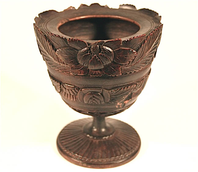 Title: Antique Dark Wooden Carved Chalice Christian Church Cup