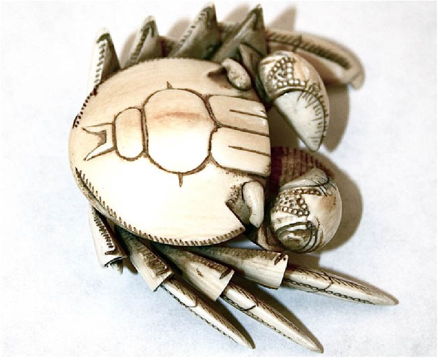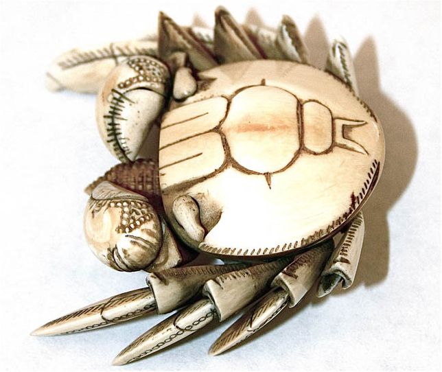 Beautiful Handcrafted Ivory articulated Crab Articulated ivory crab with a hinged lags in the shape of a crab. This is an intricately carved snuff box. Oriental articulated crab is being offered for your consideration. This beautiful crab is of superior workmanship and would look great anywhere.