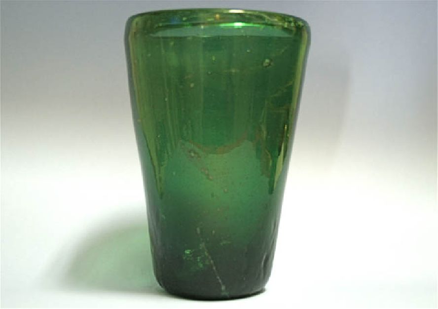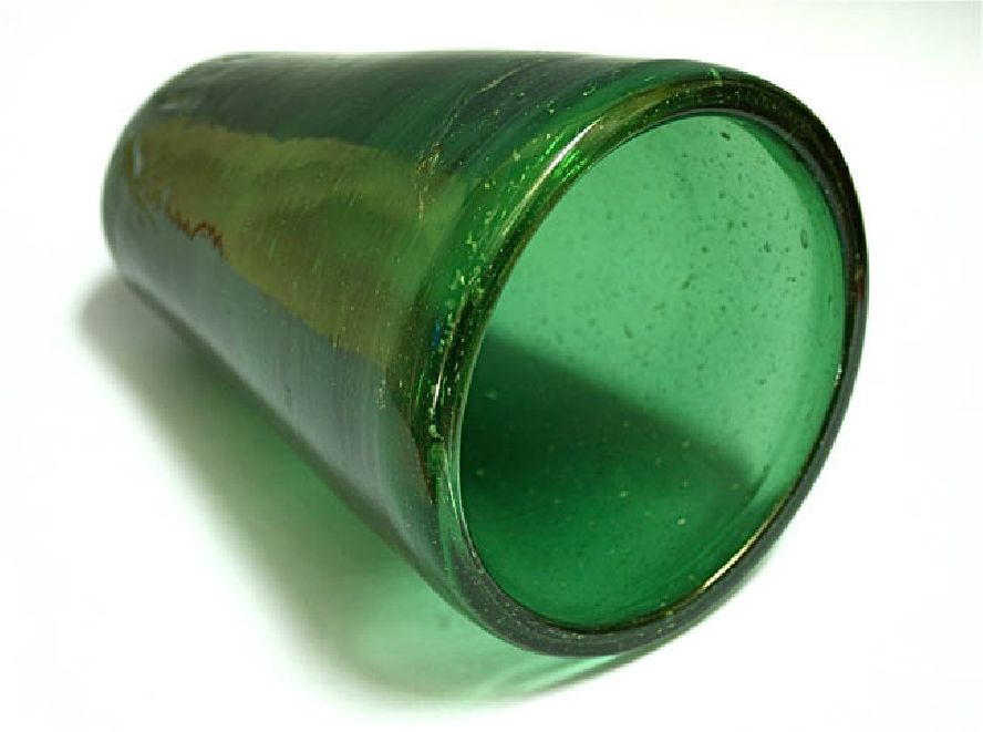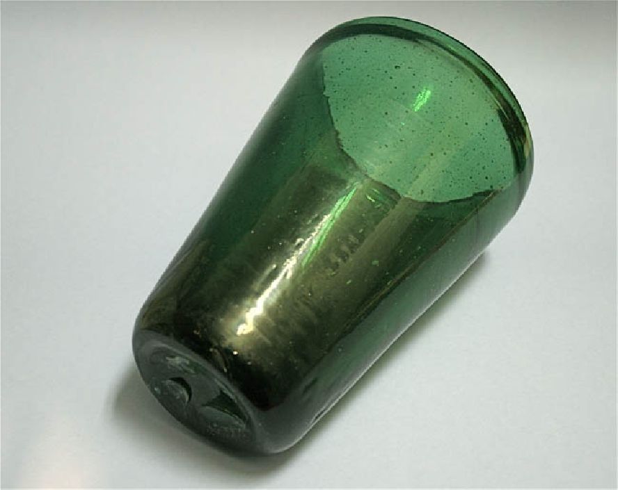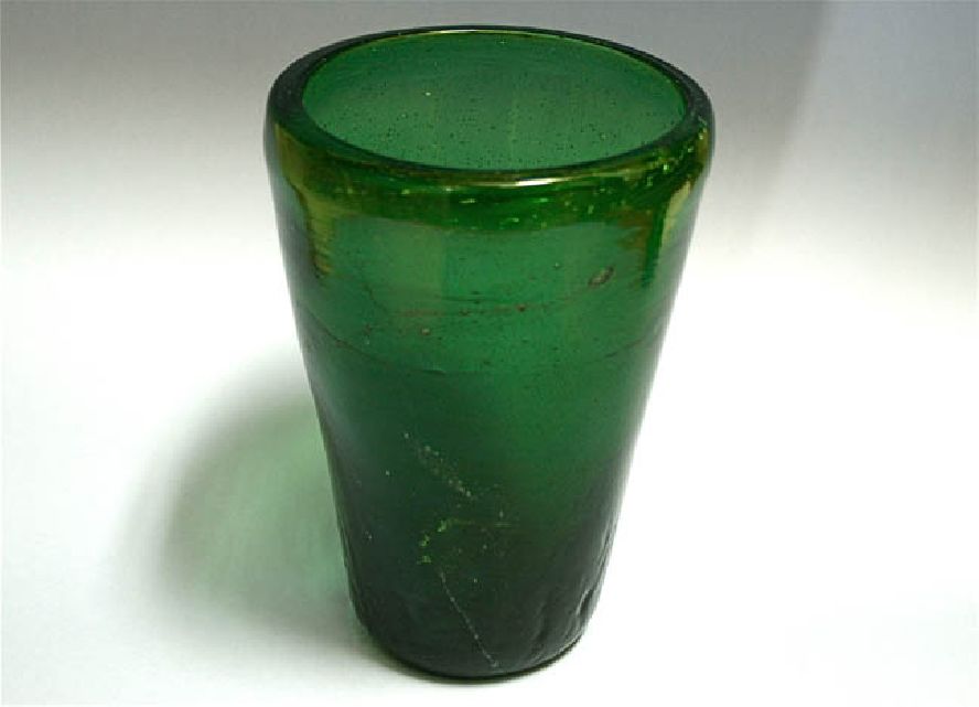Title: Antique Pharmacy Mortar Hand Blown Glass Deep-Green Vessel