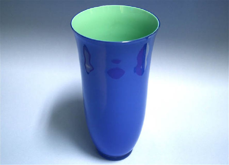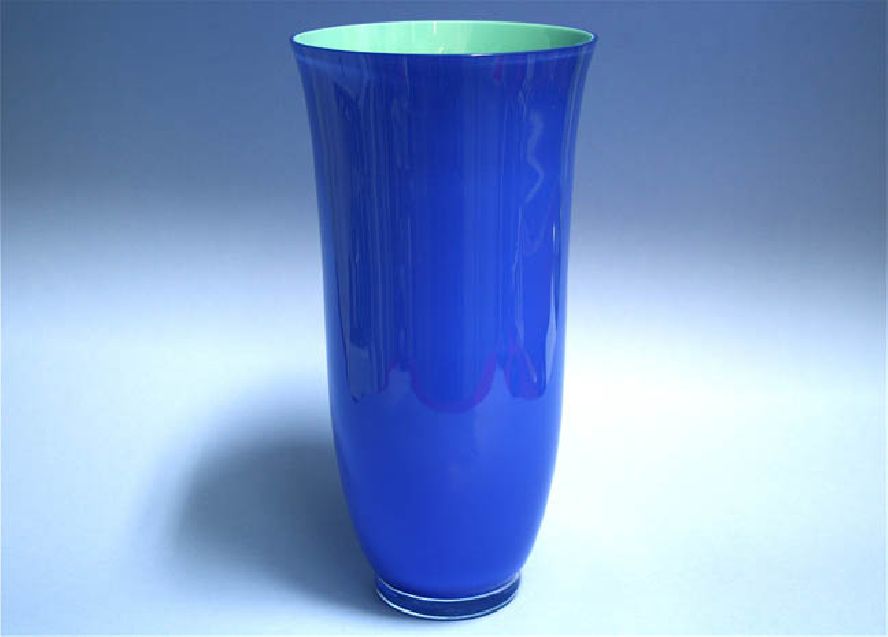 Title: 20th Century Venetian Art Glass, Hand Blown tall blue vase