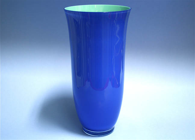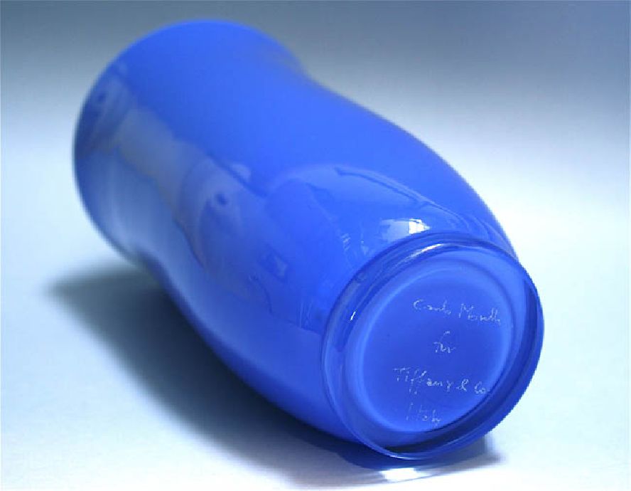20th Century Venetian Art Glass, Hand Blown tall blue vase Italian Art Glass Venice, Italy, 20th century Colored glass piece, in blue and light blue on the inside, hand signed by the artist. it was made for Tiffany & Co. Pictures simply do not do justice to this piece. This incredible piece of art glass is something that captivates you. A true master of art glass from this period.