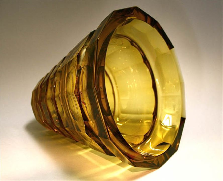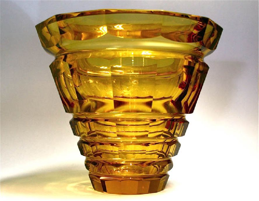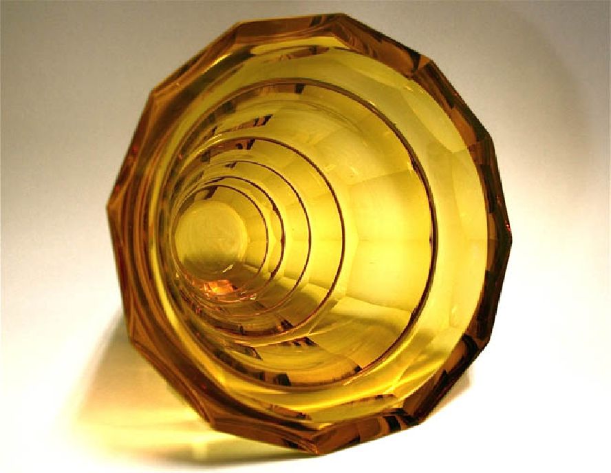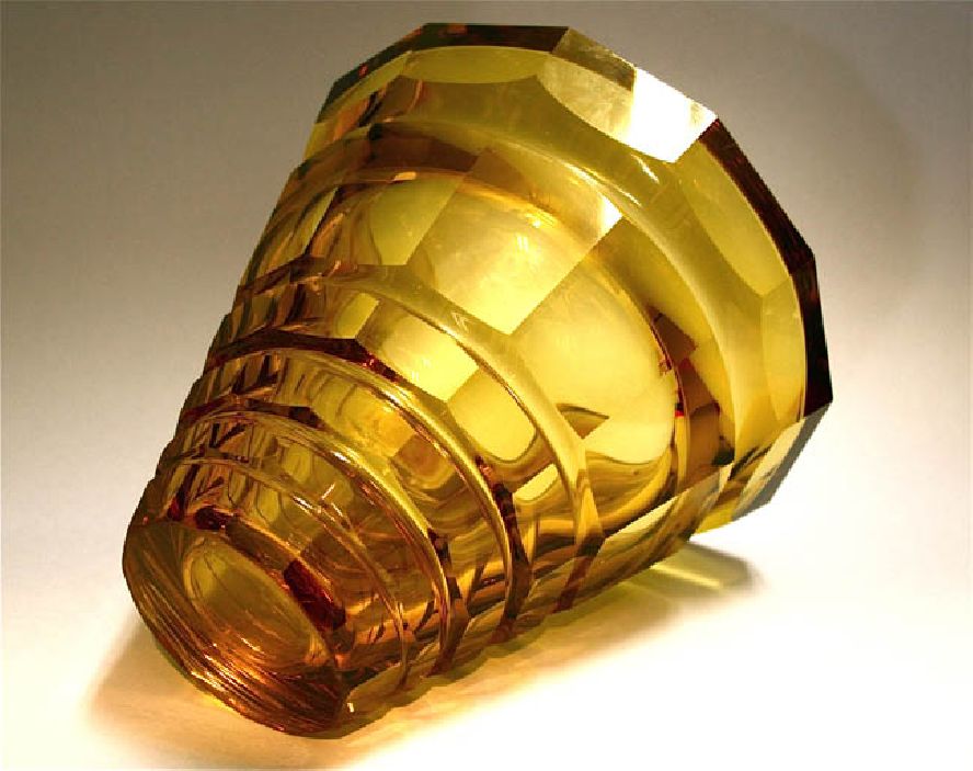 Title: Heavy cut crystal vase in a beautiful yellow crystal glass