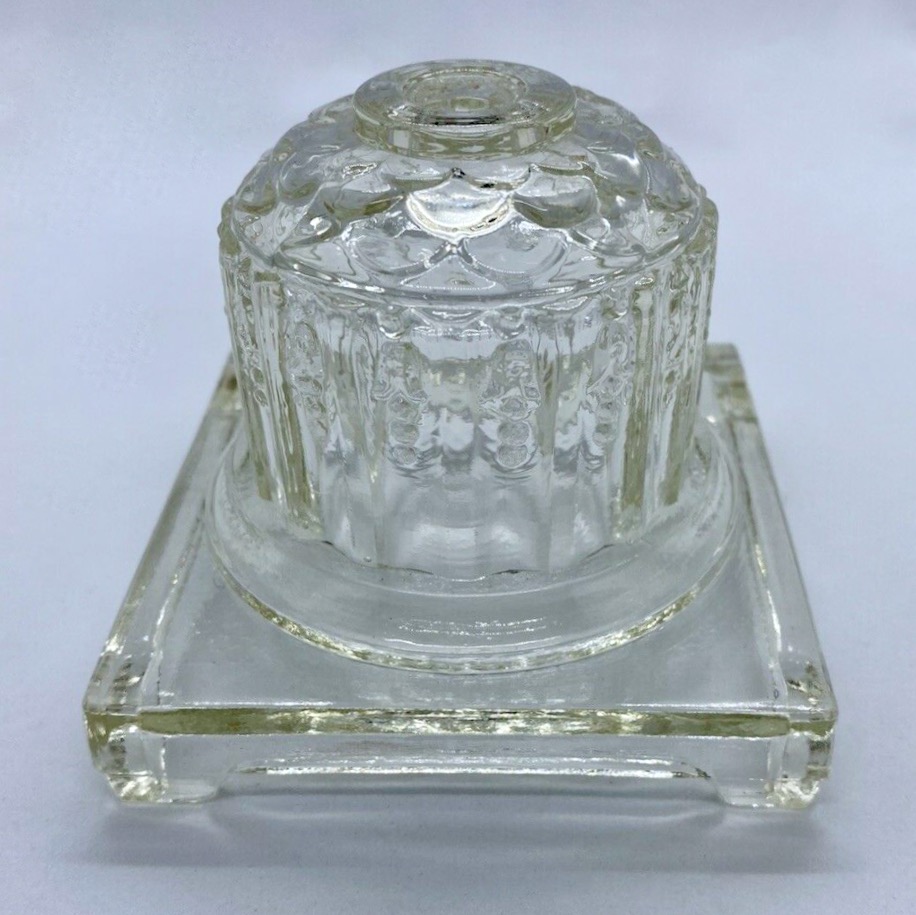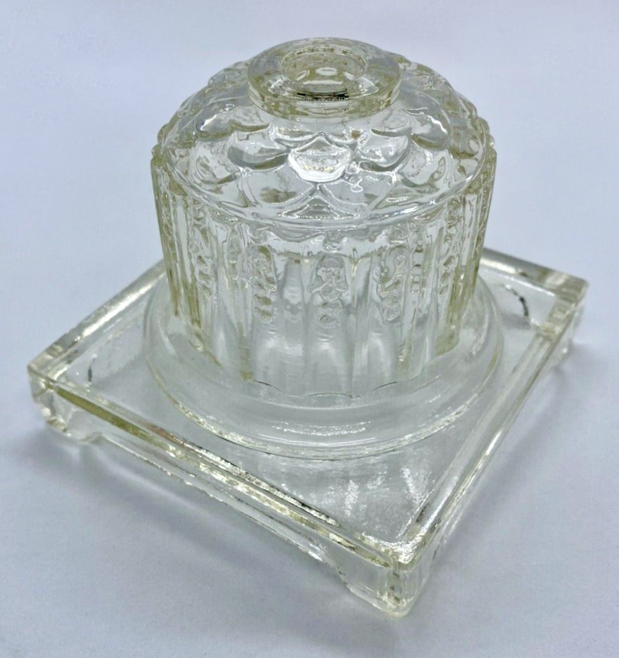 Title: Antique Art Deco Molded Glass Designer Inkwell Desktop Cover