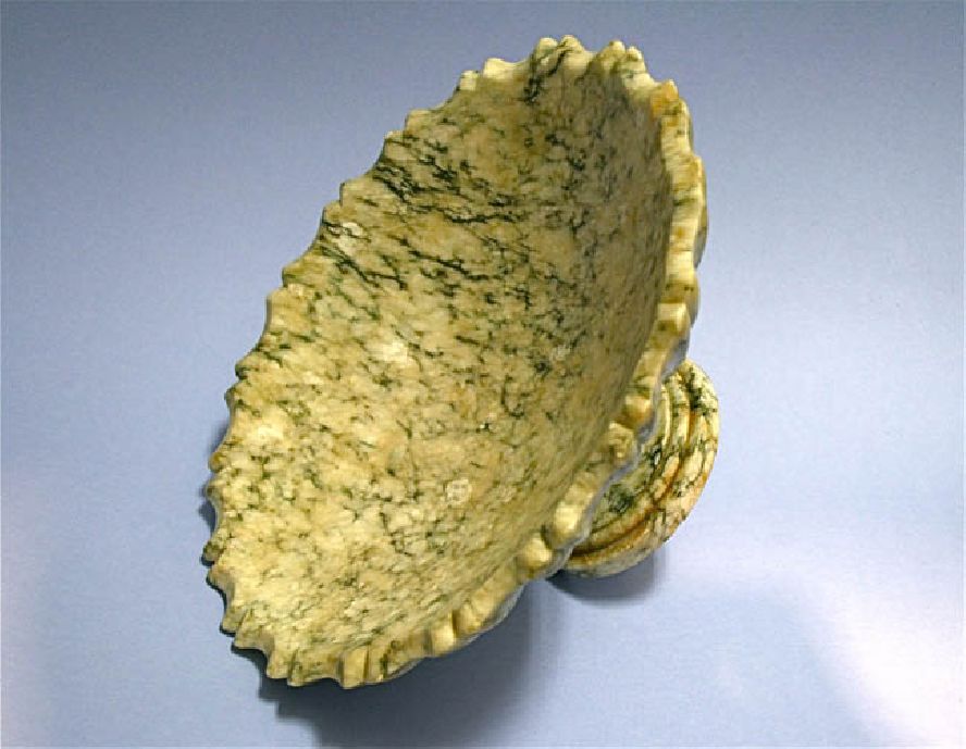 Title: Antique white carved alabaster bowl vase with beautiful marbling