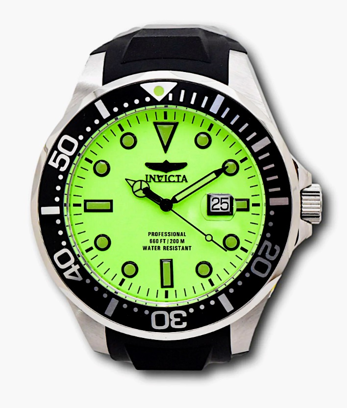 Brand new, never worn 60mm Invicta Men’s Grand Diver Automatic Stainless Steel Watch featuring an incredibly rare limited-edition lime green dial and a black stainless steel bezel. This ey...