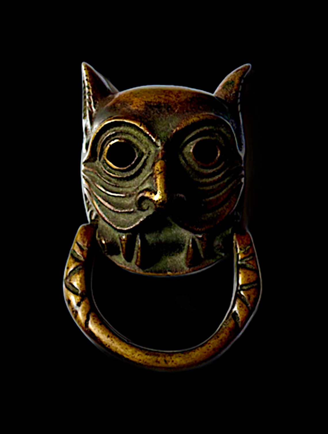 Rare 19th Century Bronze Hardware Antique Spooky Cat Door Knocker