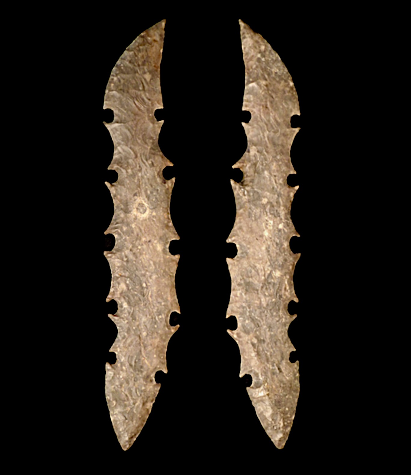 Large Ceremonial Eccentric Flint, Mexico, Mid-2nd Century. A fine example showcasing exceptional flint knapping. Completely intact and original. Measures 10.75 x 2 inches.